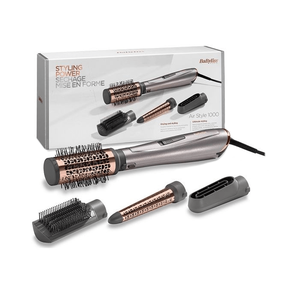 1000 واط | فرشاة تجفيف ناعمة | فرشاة تكثيف 50 ملم | ملحق تجعيد مخروطي الشكل | فوهة التجفيف | 2 إعداد تسخين بالإضافة إلى الإعداد البارد | التحكم في التجعد الأيوني | قفاز حراري | سلك دوار 2.5 متر |